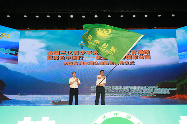 全国三亿青少年进森林公益活动启动现场,钱江源国家公园接授“绿色中国行”旗帜。