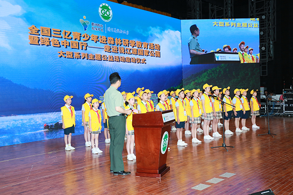 会上,著名表演艺术家、周恩来总理扮演者刘劲与小朋友们一同发出《全国三亿青少年进森林倡议》。《倡议》指出:森林,生命的家园,人类的摇篮,文明的源泉。